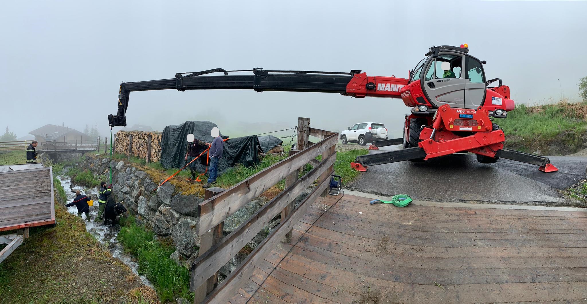 Sauvetage d'une vache dans un torrent @Medieres